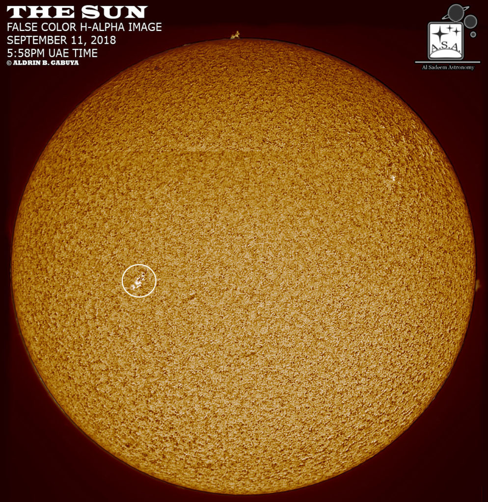 Here are today’s solar images taken from Al Sadeem Observatory, September 11, 2018. The sky was clear with light air turbulence making the seeing and transparency good at the time these images were taken.